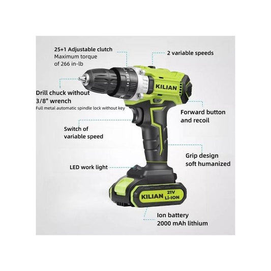 🛠️ KILIAN ETHAN 21V Cordless Impact Drill Screw Machine (10mm) with Complete Tool Kit